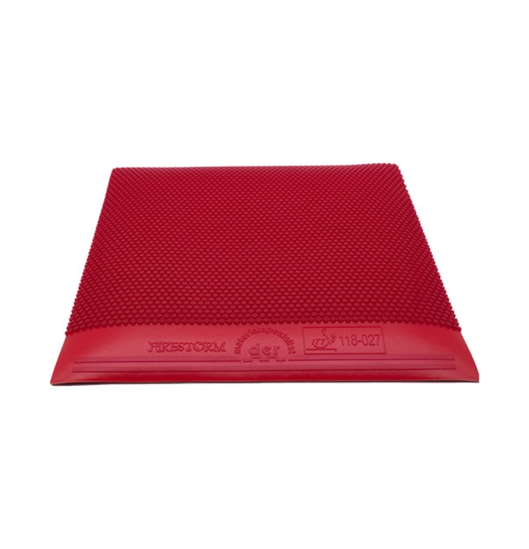Firestorm är ett kortnabbsgummi designat för spelare som söker explosiv fart och maximal kontroll i sitt offensiva spel. Det är en produkt från der-materialspezialist som kombinerar en innovativ ytgummi-struktur med en extremt snabb svamp för att ge enastående katapulteffekt och fart, liknande den hos limmade racketar.
