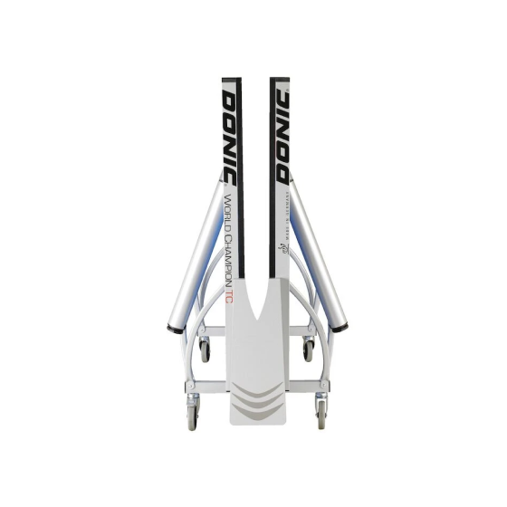 TC-konstruktionen (Twin Compact) gör bordet enkelt och säkert att hantera. Varje bordshalva är stabil och robust, samtidigt som det går smidigt att fälla upp, låsa och rulla undan på de starka, låsbara hjulen. Stommen är konstruerad av förstärkt metall och erbjuder exceptionell stabilitet även vid intensivt spel.