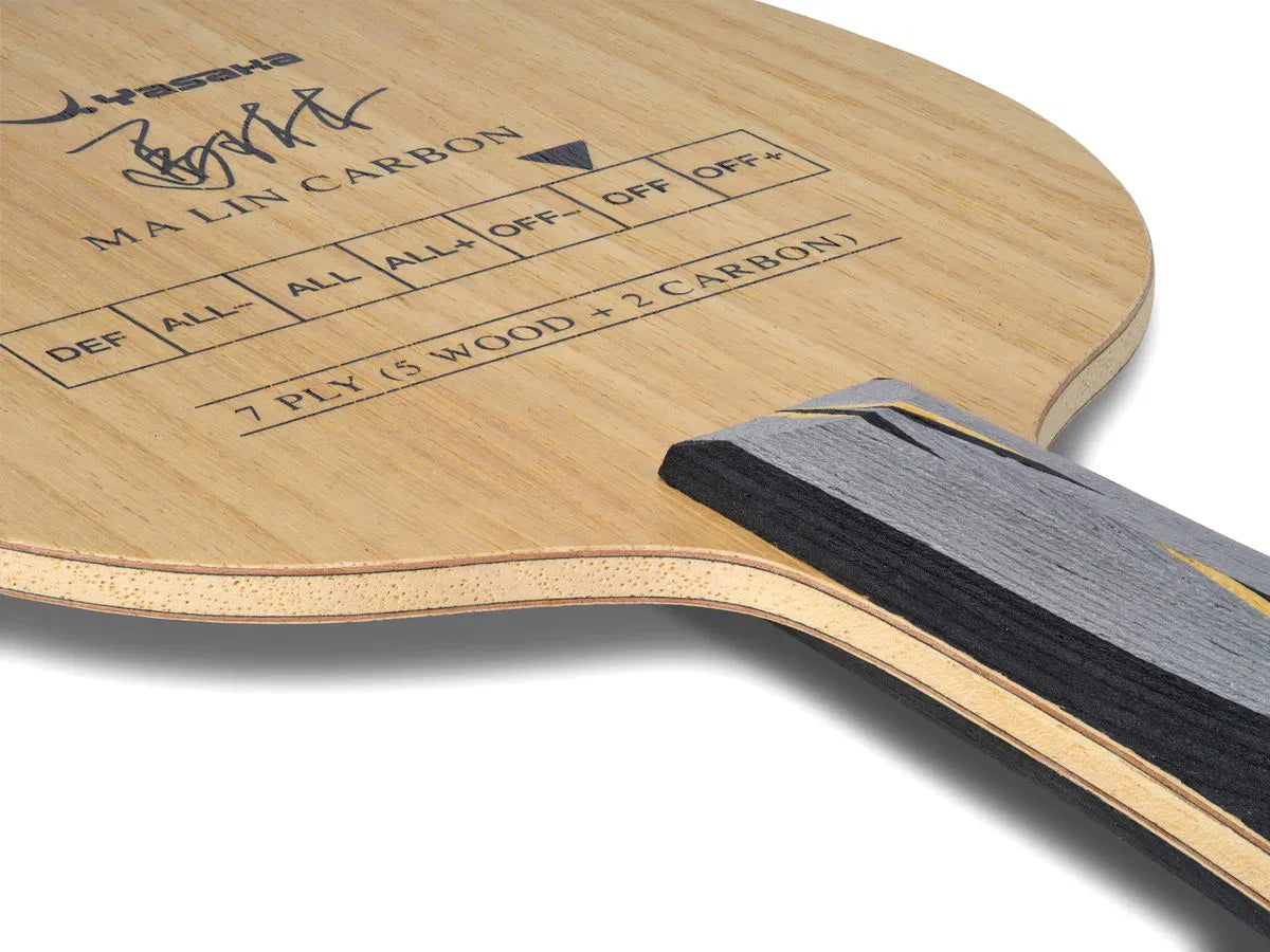 Ma Lin Carbon kombinerar fem lager trä med två lager CFNW (Carbon Fleece Non-Woven), placerade nära kärnan för att skapa en unik balans mellan fart, kontroll och känsla. Till skillnad från många ytterkolfiberstommar som ofta är styva, ger denna konstruktion en mer naturlig bollkontakt och gör det enklare att generera kontrollerad spinn och precision utan att förlora kraft.