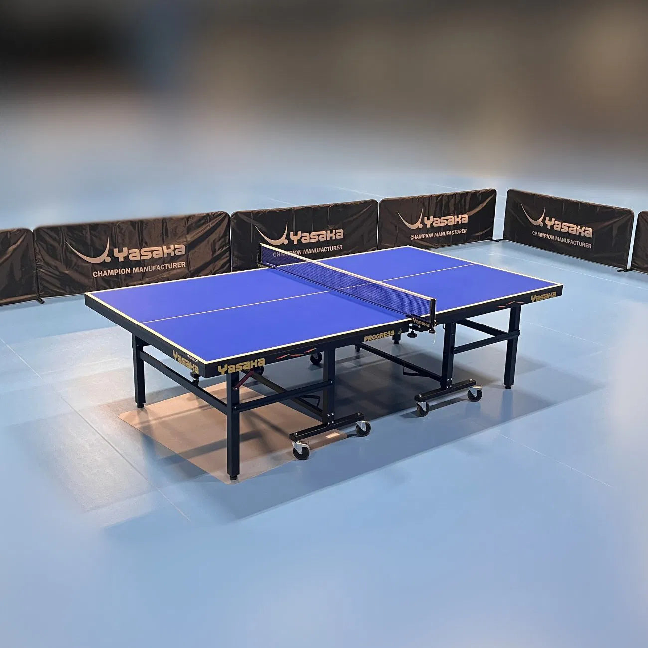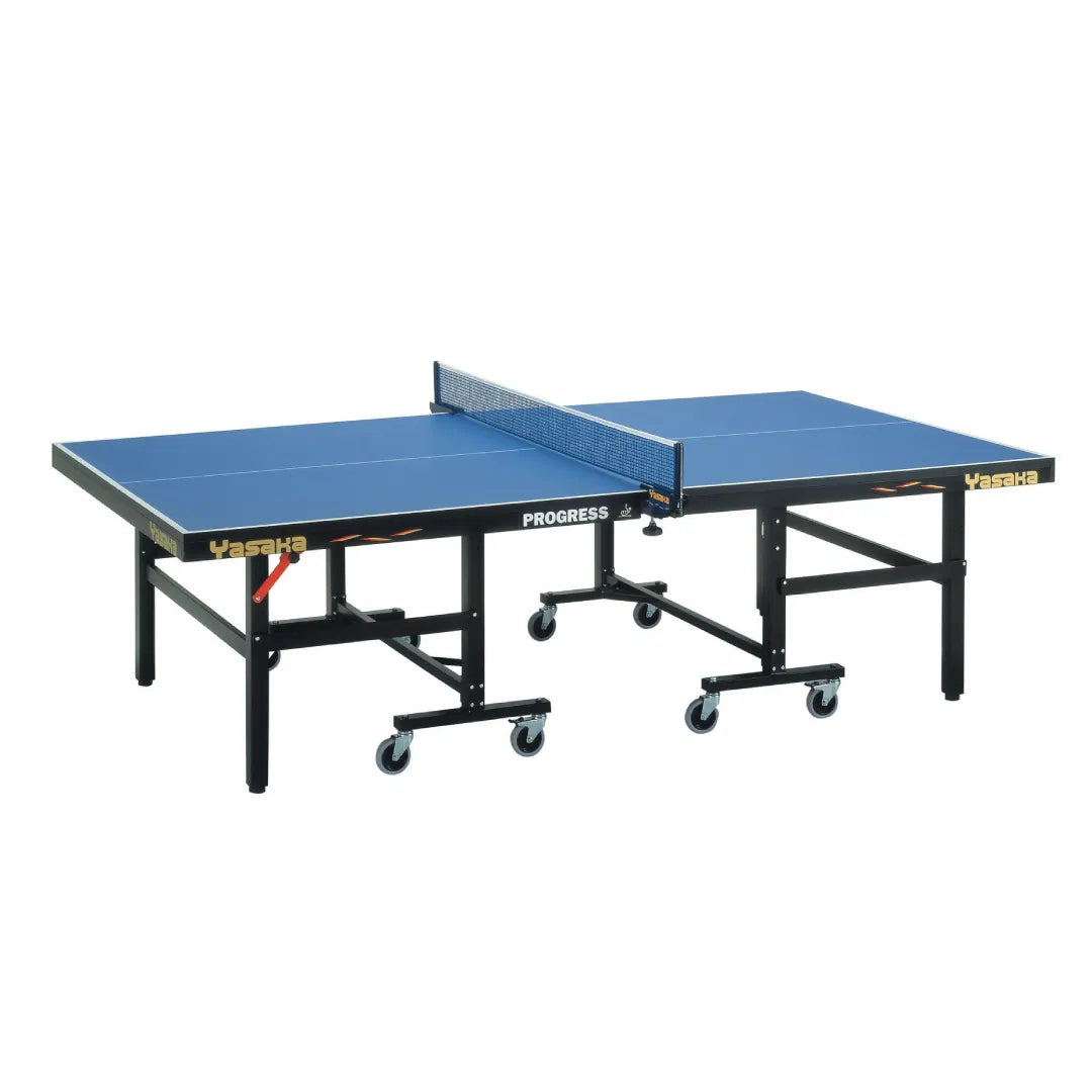 Yasaka Progress Roller är ett högklassigt bordtennisbord utvecklat för tävlingar och seriösa spelare. Det har en stabil och slitstark stålkonstruktion med ram i 50 × 20 mm, vilket ger utmärkt hållbarhet och stabilitet även vid intensiv användning. De låsbara stålhjulen gör bordet enkelt att flytta och säkert att låsa fast under spel.