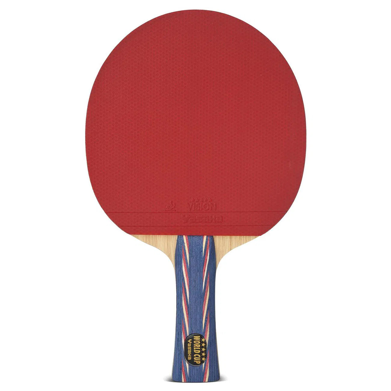 World Cup är framtagen för nya tävlingsspelare som vill ha ett presterande racket med bra balans mellan fart, spinn och kontroll. Racketen har ett femlagers stomme kombinerat med ett slätt "5stjärnigt"-gummi och en 2 mm medelhård svamp.
